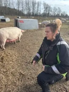 I Vorslunde lige udenfor Give ligger Greensgaard. Her driver Peter Bruun og Lene Conradsen en griseproduktion på friland, hvor halvdelen af genetikken kommer fra DanBred