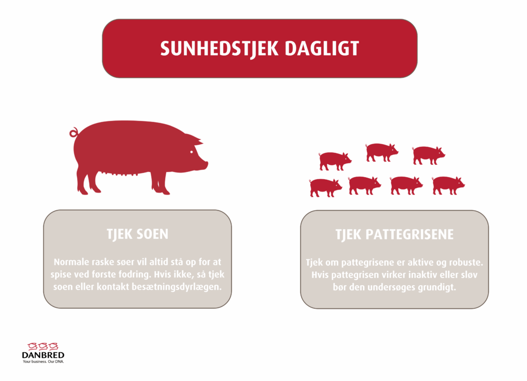 • Lav daglige sundhedstjek ved første fodring, start gerne med de mindste pattegrise.