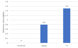 Heterosis in zigzag and F1 gilts results in 0.8 and 1.5 extra piglets respectively compared to in purebred gilts.